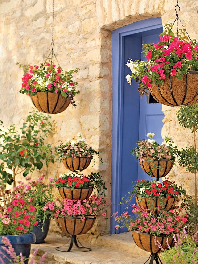 How do garden centers keep their hanging baskets so lush? We’ve discovered the secret: AquaSav™ Basket Liners. Developed for the commercial nursery trade, these smarter hanging basket liners require 50% less watering than standard baskets. Sandwiched between layers of natural coir fiber is a water-retaining liner made of 100% recycled post-consumer plastic. It’s a lifesaver for flowers, especially if they’re exposed to both sun and wind.