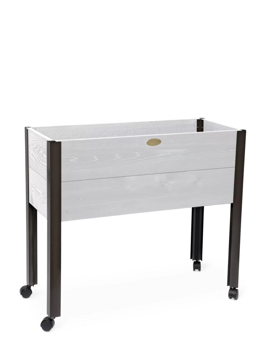 Grow an abundance of food and flowers in a compact space. This lovely planter box is made of rot-resistant wood, coated with eco-friendly, food-safe PolyWhey® stain. It features our signature lifetime aluminum legs, and casters make it easy to roll around on your deck or patio. With a 10.5″ planting depth, this garden box is perfect for herbs, veggies, edible flowers, or an entire salsa garden. No-bend gardening is easier on your back and knees, and you’ll have fewer weeds to deal with too!