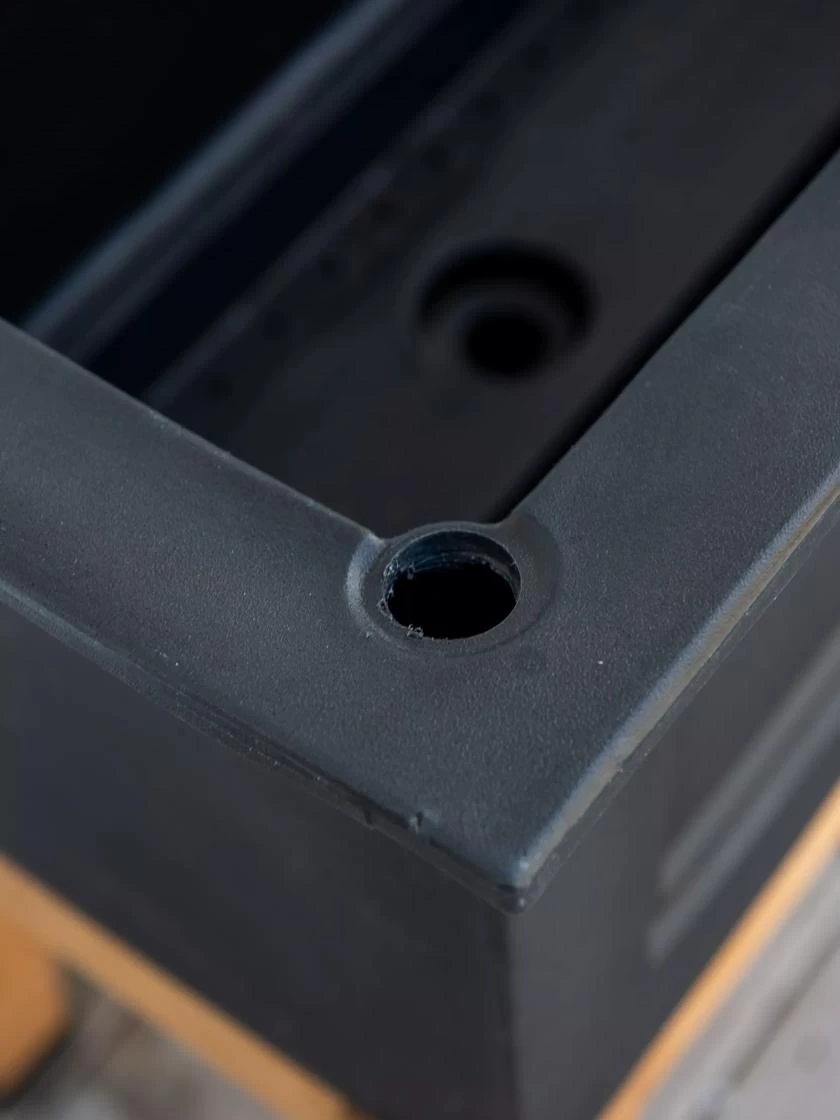 • Durable & weatherproof UV-protected polyethylene planter on wood stand
