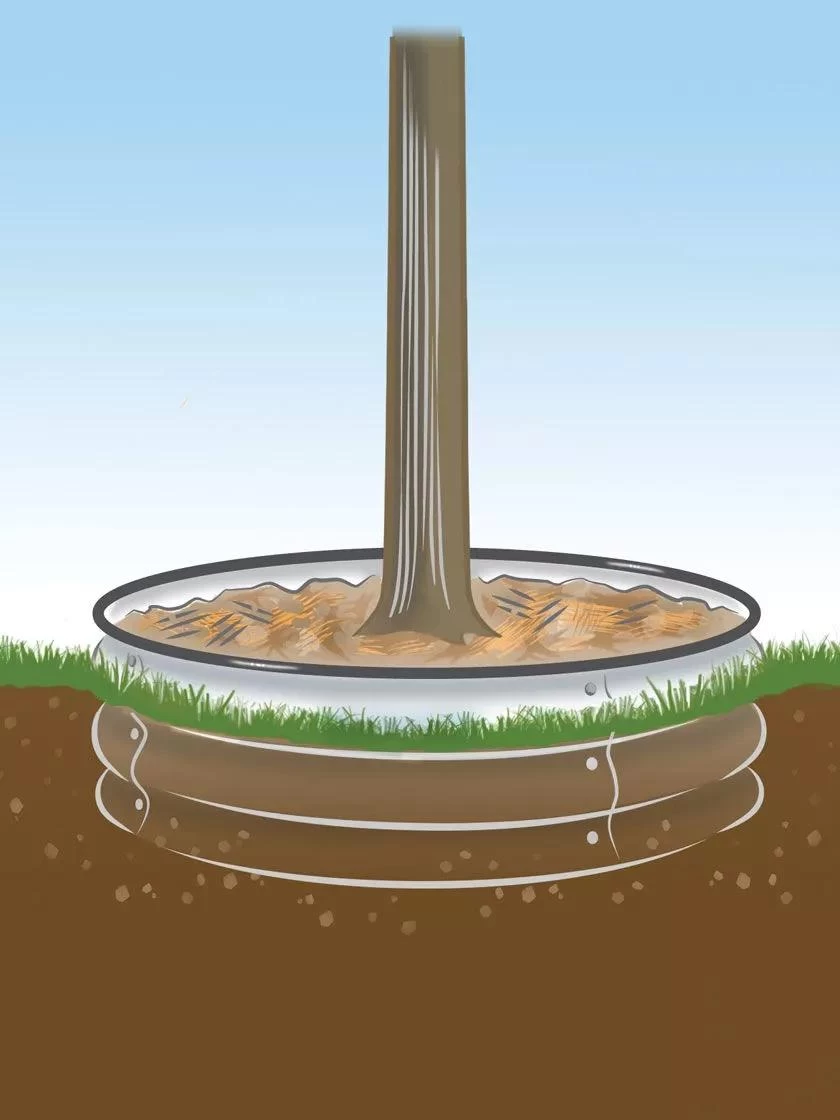 - Directs water to tree roots