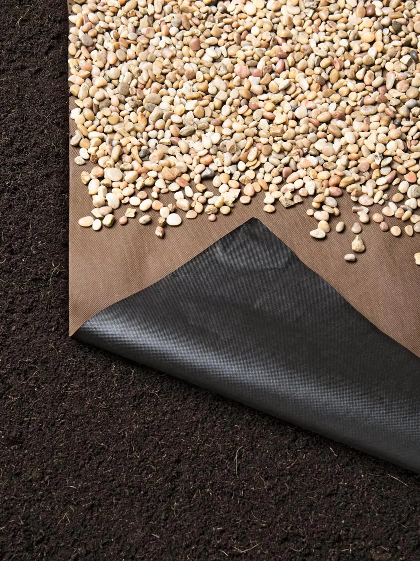 Weed Barrier Pro is a super-tough, 3-1/2 oz. polypropylene fabric weed mat, strong and specially designed for use beneath bark mulch, crushed stone, gravel, or paving stones. Similarity in color to bark mulch results in less obvious bare spots too. Suppresses weed growth while allowing air, water, and nutrients to pass through. Can also be used behind retaining walls.