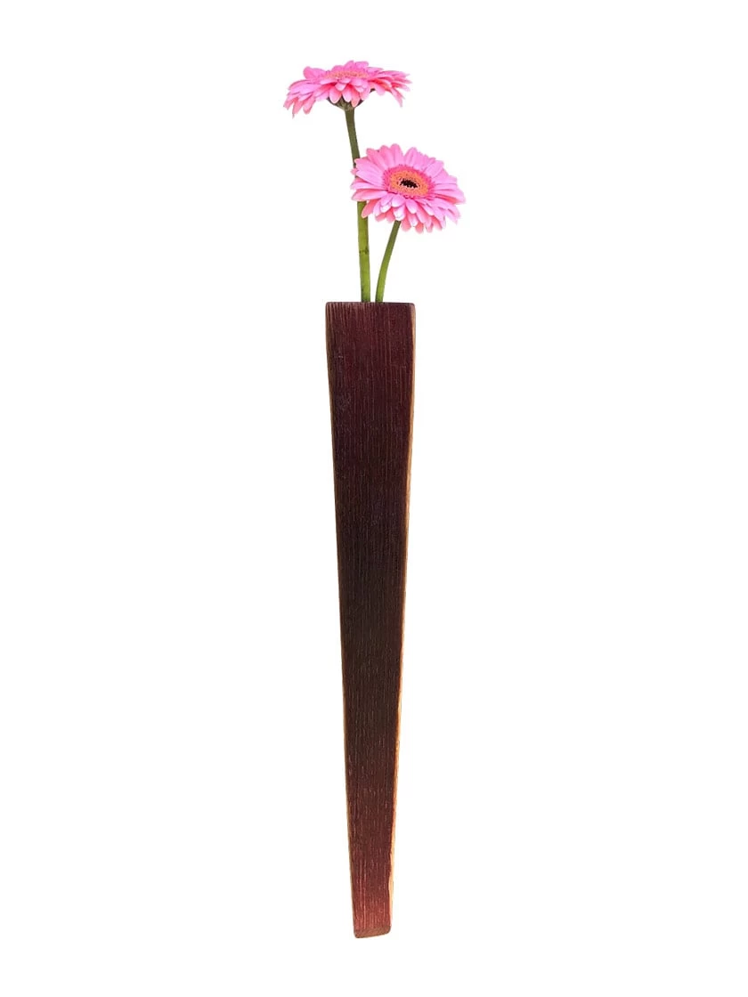 Our handmade wine barrel vase is made from salvaged wine barrels from Sonoma California. Each wine barrel is made from French Oak wood and varies in color and size. Each vase will be slightly different and unique. This vase can be used both inside and outside and would look great in your entryway, dining room, living room, kitchen, side of your house, or even for wedding decorations. After we take the wine barrel apart, we meticulously inspect each wine barrel stave and pick only the best staves. We then clean, hand carve, and sand each stave. We then add a hole for the test tube to fit into at the top and then add a UV and water-resistant sealant to each vase. Your order will include the wine barrel vase, plastic test tube insert, and hanging hardware installed.